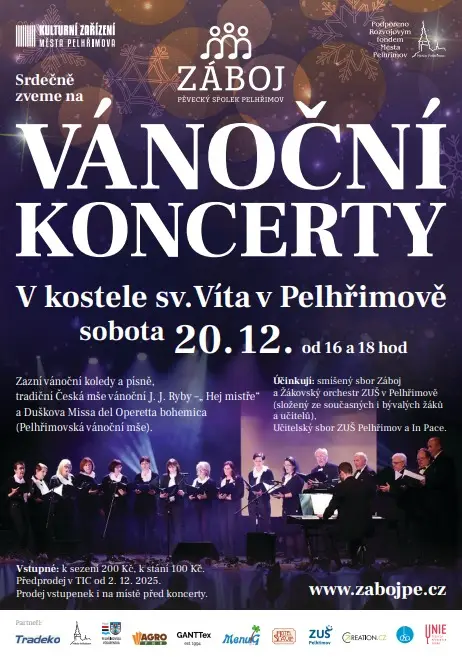 Zazní vánoční koledy a písně, tradiční Česká mše vánoční od J. J. Ryby a Duškova Missa del Operetta bohemica (Pelhřimovská vánoční mše).